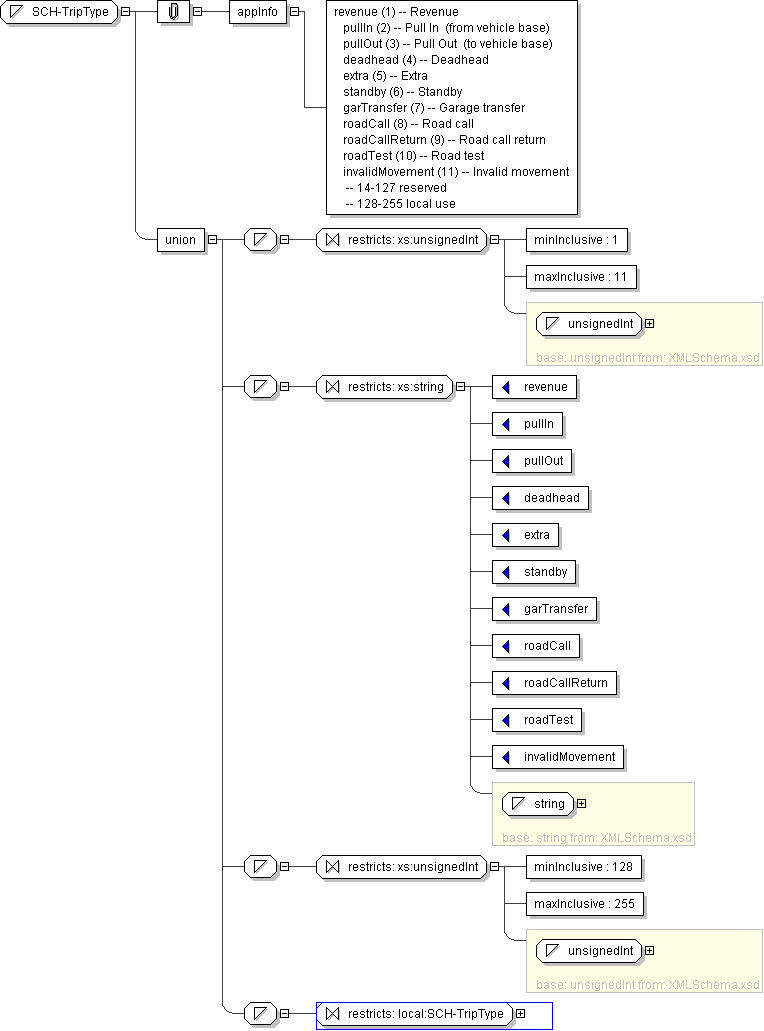 | Used by (from the same schema document) | Complex Type CCPTVTripData , Complex Type SCHTrip , Complex Type SCHTripInfo |