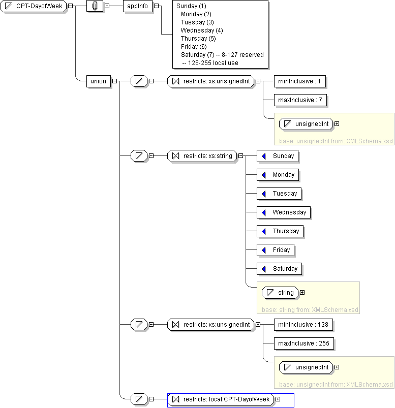 | Application Data | Sunday (1) Monday (2) Tuesday (3) Wednesday (4) Thursday (5) Friday (6) Saturday (7) -- 8-127 reserved -- 128-255 local use |