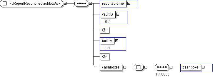 Used by (from the same schema document) Element fcReportReconcileCashboxAck