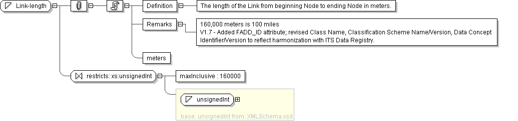 | Documentation | <Definition> The length of the Link from beginning Node to ending Node in meters.</Definition> <Remarks> 160,000 meters is 100 miles V1.7 - Added FADD_ID attribute; revised Class Name, Classification Scheme Name/Version, Data Concept Identifier/Version to reflect harmonization with ITS Data Registry.</Remarks> meters |
