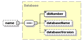 | source | <xs:complexType name="DatabaseIdentity"> <xs:sequence> <xs:element name="identity" minOccurs="0"> <xs:simpleType> <xs:restriction base="xs:string"> <xs:minLength value="1"/> <xs:maxLength value="10"/> </xs:restriction> </xs:simpleType> </xs:element> <xs:element name="number" type="DatabaseNumber" minOccurs="0"/> <xs:element name="name" type="Database" minOccurs="0"/> <xs:element name="version" type="DatabaseVersion" minOccurs="0"/> </xs:sequence> </xs:complexType> |