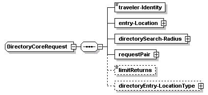 | source | <xs:complexType name="DirectoryCoreRequest"> <xs:sequence> <xs:element name="traveler-Identity" type="Traveler-Identity"/> <xs:element name="entry-Location" type="RouteOrLocation"/> <xs:element name="directorySearch-Radius" type="SearchRadius"/> <xs:element name="requestPair" type="DirectoryTypePair"/> <xs:element name="limitReturns" type="LimitReturns" minOccurs="0"/> <xs:element name="directoryEntry-LocationType" type="lrms:LocationReference" minOccurs="0"/> </xs:sequence> </xs:complexType> |