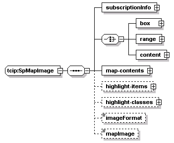 | source | <xs:complexType name="SpMapImage"> <xs:sequence> <xs:element name="subscriptionInfo" type="CPTSubscriptionHeader"/> <xs:choice> <xs:element name="box" type="SPBoundaryBox"/> <xs:element name="range" type="SPBoundaryRange"/> <xs:element name="content" type="SPBoundaryContent"/> </xs:choice> <xs:element name="map-contents"> <xs:complexType> <xs:sequence maxOccurs="200"> <xs:element name="map-content" type="CPT-FeatureType"/> </xs:sequence> </xs:complexType> </xs:element> <xs:element name="highlight-items" minOccurs="0"> <xs:complexType> <xs:sequence maxOccurs="50"> <xs:element name="highlight-item" type="CPTGenericIden"/> </xs:sequence> </xs:complexType> </xs:element> <xs:element name="highlight-classes" minOccurs="0"> <xs:complexType> <xs:sequence maxOccurs="50"> <xs:element name="highlight-classe" type="CPT-FeatureType"/> </xs:sequence> </xs:complexType> </xs:element> <xs:element name="imageFormat" type="PI-GraphicFormat" minOccurs="0"/> <xs:element name="mapImage" type="PI-BinaryImageData" minOccurs="0"/> </xs:sequence> </xs:complexType> |