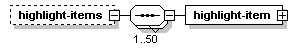 | source | <xs:element name="highlight-items" minOccurs="0"> <xs:complexType> <xs:sequence maxOccurs="50"> <xs:element name="highlight-item" type="CPTGenericIden"/> </xs:sequence> </xs:complexType> </xs:element> |