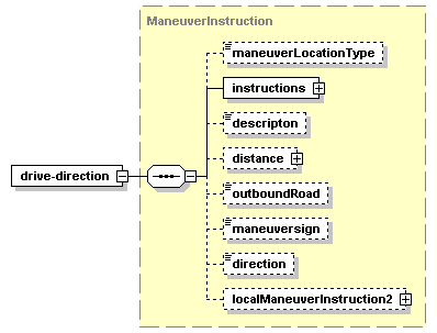 | source | <xs:element name="drive-directions"> <xs:complexType> <xs:sequence maxOccurs="100"> <xs:element name="drive-direction" type="atis:ManeuverInstruction"/> </xs:sequence> </xs:complexType> </xs:element> |