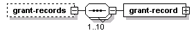 | source | <xs:element name="grant-records" minOccurs="0"> <xs:complexType> <xs:sequence maxOccurs="10"> <xs:element name="grant-record" type="TSPGrantRecord"/> </xs:sequence> </xs:complexType> </xs:element> |
