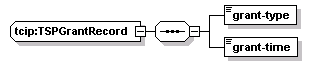 | source | <xs:complexType name="TSPGrantRecord"> <xs:sequence> <xs:element name="grant-type" type="TSP-GrantType"/> <xs:element name="grant-time" type="SCP-TimeInterval"/> </xs:sequence> </xs:complexType> |
