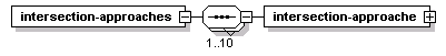 | source | <xs:element name="intersection-approaches"> <xs:complexType> <xs:sequence maxOccurs="10"> <xs:element name="intersection-approache" type="TSPTmsIntersectionApproach"/> </xs:sequence> </xs:complexType> </xs:element> |