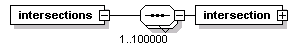 | source | <xs:element name="intersections"> <xs:complexType> <xs:sequence maxOccurs="100000"> <xs:element name="intersection" type="CPTIntersectionIden"/> </xs:sequence> </xs:complexType> </xs:element> |