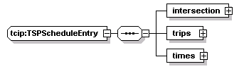 | source | <xs:complexType name="TSPScheduleEntry"> <xs:sequence> <xs:element name="intersection" type="CPTIntersectionIden"/> <xs:element name="trips"> <xs:complexType> <xs:sequence maxOccurs="5000"> <xs:element name="trip" type="SCHTripIden"/> </xs:sequence> </xs:complexType> </xs:element> <xs:element name="times"> <xs:complexType> <xs:sequence maxOccurs="5000"> <xs:element name="time" type="SCH-Time"/> </xs:sequence> </xs:complexType> </xs:element> </xs:sequence> </xs:complexType> |