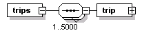| source | <xs:element name="trips"> <xs:complexType> <xs:sequence maxOccurs="5000"> <xs:element name="trip" type="SCHTripIden"/> </xs:sequence> </xs:complexType> </xs:element> |