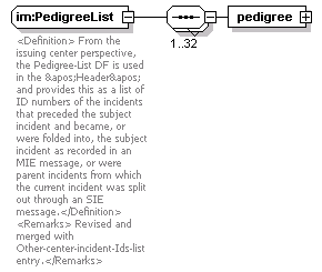 | source | <xs:complexType name="PedigreeList"> <xs:annotation> <xs:documentation> <Definition> From the issuing center perspective, the Pedigree-List DF is used in the 'Header' and provides this as a list of ID numbers of the incidents that preceded the subject incident and became, or were folded into, the subject incident as recorded in an MIE message, or were parent incidents from which the current incident was split out through an SIE message.</Definition> <Remarks> Revised and merged with Other-center-incident-Ids-list entry.</Remarks> </xs:documentation> </xs:annotation> <xs:sequence maxOccurs="32"> <xs:element name="pedigree"> <xs:complexType> <xs:sequence> <xs:element name="organizationId" type="tmdd:Organization-resource-identifier"/> <!-- A unique identifier for an organization within a region. --> <xs:element name="eventID" type="ReferenceID"/> <!-- the reference value to the event in the system --> <xs:element name="typeEvent" type="itis:ITISEventType"/> <!-- a catagory and an item from that catagory Uses the same basic types as ITIS/ATIS/TMDD --> <xs:element name="reasonCode" type="SplitReason" minOccurs="0"/> <!-- reason of an event numbering change --> <xs:element name="comment" type="FreeText" minOccurs="0"/> <!-- any additional textual data --> <xs:element name="localPedigreeList" type="local:PedigreeList" minOccurs="0"/> </xs:sequence> </xs:complexType> </xs:element> </xs:sequence> </xs:complexType> |