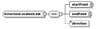 | source | <xs:complexType name="GeoLocationLink"> <xs:sequence> <xs:element name="startPoint" type="GeoLocation"/> <xs:element name="endPoint" type="GeoLocation"/> <xs:element name="direction" type="Direction" minOccurs="0"/> </xs:sequence> </xs:complexType> |