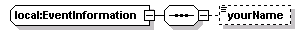 | source | <xs:complexType name="EventInformation"> <xs:sequence> <xs:element name="yourName" minOccurs="0"> <xs:simpleType> <xs:restriction base="xs:string"> <xs:length value="10"/> </xs:restriction> </xs:simpleType> </xs:element> <!-- Insert instance name and Type of each elements here, and any restrictions that are needed. --> </xs:sequence> </xs:complexType> |