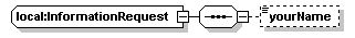 | source | <xs:complexType name="InformationRequest"> <xs:sequence> <xs:element name="yourName" minOccurs="0"> <xs:simpleType> <xs:restriction base="xs:string"> <xs:length value="10"/> </xs:restriction> </xs:simpleType> </xs:element> <!-- Insert instance name and Type of each elements here, and any restrictions that are needed. --> </xs:sequence> </xs:complexType> |