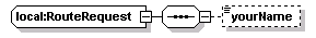 | source | <xs:complexType name="RouteRequest"> <xs:sequence> <xs:element name="yourName" minOccurs="0"> <xs:simpleType> <xs:restriction base="xs:string"> <xs:length value="10"/> </xs:restriction> </xs:simpleType> </xs:element> <!-- Insert instance name and Type of each elements here, and any restrictions that are needed. --> </xs:sequence> </xs:complexType> |