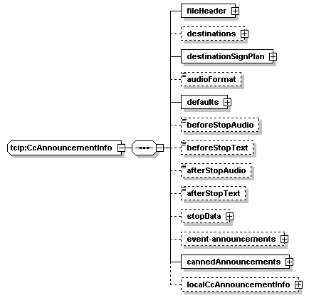 | children | fileHeader destinations destinationSignPlan audioFormat defaults beforeStopAudio beforeStopText afterStopAudio afterStopText stopData event-announcements cannedAnnouncements localCcAnnouncementInfo | ||