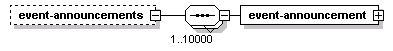 | source | <xs:element name="event-announcements" minOccurs="0"> <xs:complexType> <xs:sequence maxOccurs="10000"> <xs:element name="event-announcement" type="PIEventAnnouncement"/> </xs:sequence> </xs:complexType> </xs:element> |