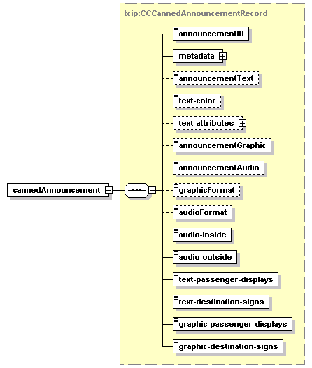 | children | announcementID metadata announcementText text-color text-attributes announcementGraphic announcementAudio graphicFormat audioFormat audio-inside audio-outside text-passenger-displays text-destination-signs graphic-passenger-displays graphic-destination-signs | ||||