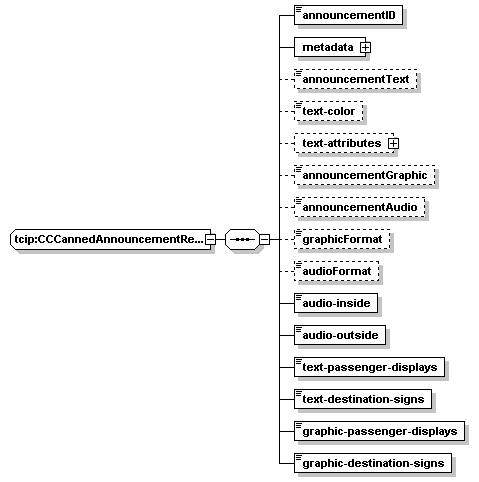 | children | announcementID metadata announcementText text-color text-attributes announcementGraphic announcementAudio graphicFormat audioFormat audio-inside audio-outside text-passenger-displays text-destination-signs graphic-passenger-displays graphic-destination-signs | ||