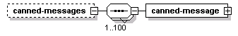 | source | <xs:element name="canned-messages" minOccurs="0"> <xs:complexType> <xs:sequence maxOccurs="100"> <xs:element name="canned-message" type="CCCannedMsgDefinition"/> </xs:sequence> </xs:complexType> </xs:element> |