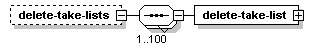 | source | <xs:element name="delete-take-lists" minOccurs="0"> <xs:complexType> <xs:sequence maxOccurs="100"> <xs:element name="delete-take-list" type="CCTakeListDefinition"/> </xs:sequence> </xs:complexType> </xs:element> |