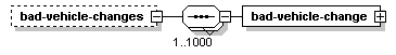 | source | <xs:element name="bad-vehicle-changes" minOccurs="0"> <xs:complexType> <xs:sequence maxOccurs="1000"> <xs:element name="bad-vehicle-change" type="CCVehicleAssignmentChange"/> </xs:sequence> </xs:complexType> </xs:element> |