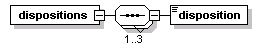 | source | <xs:element name="dispositions"> <xs:complexType> <xs:sequence maxOccurs="3"> <xs:element name="disposition" type="CC-RequestDisposition"/> </xs:sequence> </xs:complexType> </xs:element> |