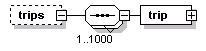 | source | <xs:element name="trips" minOccurs="0"> <xs:complexType> <xs:sequence maxOccurs="1000"> <xs:element name="trip" type="SCHTripIden"/> </xs:sequence> </xs:complexType> </xs:element> |
