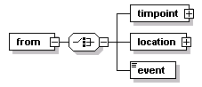 | source | <xs:element name="from"> <xs:complexType> <xs:choice> <xs:element name="timpoint" type="SCHTimepointIden"/> <xs:element name="location" type="lrms:GeoLocation"/> <xs:element name="event" type="SCH-ActivationID"/> </xs:choice> </xs:complexType> </xs:element> |