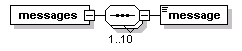 | source | <xs:element name="messages"> <xs:complexType> <xs:sequence maxOccurs="10"> <xs:element name="message" type="CC-DestinationMessageID"/> </xs:sequence> </xs:complexType> </xs:element> |