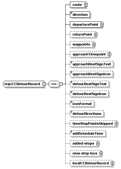 | children | route direction departurePoint returnPoint waypoints approachTimepoint approachDestSignText approachDestSignIcon detourDestSignText detourDestSignIcon iconFormat detourDirections timeStopPointsSkipped addScheduleTime added-stops new-stop-locs localCCDetourRecord | ||