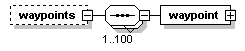 | source | <xs:element name="waypoints" minOccurs="0"> <xs:complexType> <xs:sequence maxOccurs="100"> <xs:element name="waypoint" type="lrms:GeoLocation"/> </xs:sequence> </xs:complexType> </xs:element> |
