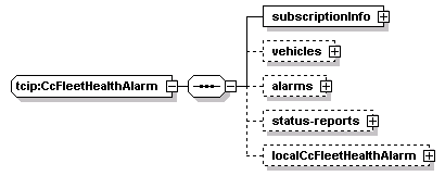 | source | <xs:complexType name="CcFleetHealthAlarm"> <xs:sequence> <xs:element name="subscriptionInfo" type="CPTSubscriptionHeader"/> <xs:element name="vehicles" minOccurs="0"> <xs:complexType> <xs:sequence maxOccurs="25000"> <xs:element name="vehicle" type="CPTVehicleIden"/> </xs:sequence> </xs:complexType> </xs:element> <xs:element name="alarms" minOccurs="0"> <xs:complexType> <xs:sequence maxOccurs="25000"> <xs:element name="alarm" type="CCPTVAlarm"/> </xs:sequence> </xs:complexType> </xs:element> <xs:element name="status-reports" minOccurs="0"> <xs:complexType> <xs:sequence maxOccurs="25000"> <xs:element name="status-report" type="OBHealthStatusRecord"/> </xs:sequence> </xs:complexType> </xs:element> <xs:element name="localCcFleetHealthAlarm" type="local:CcFleetHealthAlarm" minOccurs="0"/> </xs:sequence> </xs:complexType> |