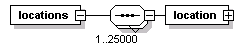 | source | <xs:element name="locations"> <xs:complexType> <xs:sequence maxOccurs="25000"> <xs:element name="location" type="CCPTVLocation"/> </xs:sequence> </xs:complexType> </xs:element> |