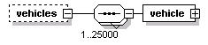 | source | <xs:element name="vehicles" minOccurs="0"> <xs:complexType> <xs:sequence maxOccurs="25000"> <xs:element name="vehicle" type="CPTVehicleIden"/> </xs:sequence> </xs:complexType> </xs:element> |
