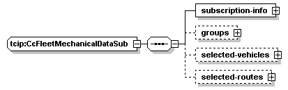 | source | <xs:complexType name="CcFleetMechanicalDataSub"> <xs:sequence> <xs:element name="subscription-info" type="CPTSubscriptionHeader"/> <xs:element name="groups" minOccurs="0"> <xs:complexType> <xs:sequence maxOccurs="100"> <xs:element name="group" type="CPT-FleetSubset"/> </xs:sequence> </xs:complexType> </xs:element> <xs:element name="selected-vehicles" minOccurs="0"> <xs:complexType> <xs:sequence maxOccurs="30000"> <xs:element name="selected-vehicle" type="CPTVehicleIden"/> </xs:sequence> </xs:complexType> </xs:element> <xs:element name="selected-routes" minOccurs="0"> <xs:complexType> <xs:sequence maxOccurs="100"> <xs:element name="selected-route" type="SCHRouteIden"/> </xs:sequence> </xs:complexType> </xs:element> </xs:sequence> </xs:complexType> |