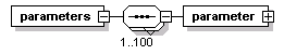 | source | <xs:element name="parameters"> <xs:complexType> <xs:sequence maxOccurs="100"> <xs:element name="parameter" type="OBParameterDumpEntry"/> </xs:sequence> </xs:complexType> </xs:element> |