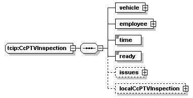 | source | <xs:complexType name="CcPTVInspection"> <xs:sequence> <xs:element name="vehicle" type="CPTVehicleIden"/> <xs:element name="employee" type="CPTEmployeeIden"/> <!-- who performed PTV inspection --> <xs:element name="time" type="CPT-DateTime"/> <!-- when employee reported inspection --> <xs:element name="ready" type="CPT-Boolean"/> <xs:element name="issues" minOccurs="0"> <xs:complexType> <xs:sequence minOccurs="0" maxOccurs="unbounded"> <xs:element name="issue" type="CC-PTVInspectionFault"/> </xs:sequence> </xs:complexType> </xs:element> <xs:element name="localCcPTVInspection" type="local:CcPTVInspection" minOccurs="0"/> </xs:sequence> </xs:complexType> |