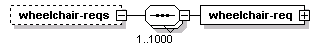 | source | <xs:element name="wheelchair-reqs" minOccurs="0"> <xs:complexType> <xs:sequence maxOccurs="1000"> <xs:element name="wheelchair-req" type="CCWheelchairLogEntry"/> </xs:sequence> </xs:complexType> </xs:element> |