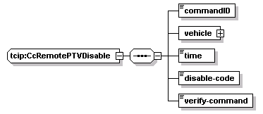 | source | <xs:complexType name="CcRemotePTVDisable"> <xs:sequence> <xs:element name="commandID" type="CPT-CommandID"/> <xs:element name="vehicle" type="CPTVehicleIden"/> <xs:element name="time" type="CPT-DateTime"/> <xs:element name="disable-code" type="CPT-GenericCounter"/> <xs:element name="verify-command" type="CPT-Boolean"/> <!-- always true --> </xs:sequence> </xs:complexType> |