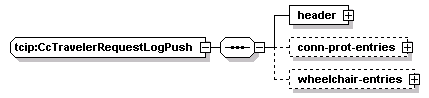 | source | <xs:complexType name="CcTravelerRequestLogPush"> <xs:sequence> <xs:element name="header" type="CPTPushHeader"/> <xs:element name="conn-prot-entries" minOccurs="0"> <xs:complexType> <xs:sequence maxOccurs="30000"> <xs:element name="conn-prot-entry" type="CCConnProtLogEntry"/> </xs:sequence> </xs:complexType> </xs:element> <xs:element name="wheelchair-entries" minOccurs="0"> <xs:complexType> <xs:sequence maxOccurs="10000"> <xs:element name="wheelchair-entry" type="CCWheelchairLogEntry"/> </xs:sequence> </xs:complexType> </xs:element> </xs:sequence> </xs:complexType> |