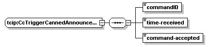 | source | <xs:complexType name="CcTriggerCannedAnnouncementAck"> <xs:sequence> <xs:element name="commandID" type="CPT-CommandID"/> <xs:element name="time-received" type="CPT-DateTime"/> <xs:element name="command-accepted" type="CPT-Boolean"/> </xs:sequence> </xs:complexType> |