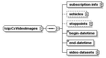 | source | <xs:complexType name="CcVideoImages"> <xs:sequence> <xs:element name="subscription-info" type="CPTSubscriptionHeader"/> <xs:element name="vehicles" minOccurs="0"> <xs:complexType> <xs:sequence maxOccurs="25000"> <xs:element name="vehicle" type="CPTVehicleIden"/> </xs:sequence> </xs:complexType> </xs:element> <xs:element name="stoppoints" minOccurs="0"> <xs:complexType> <xs:sequence maxOccurs="25000"> <xs:element name="stoppoint" type="CPTStoppointIden"/> </xs:sequence> </xs:complexType> </xs:element> <xs:element name="begin-datetime" type="CPT-DateTime"/> <xs:element name="end-datetime" type="CPT-DateTime"/> <xs:element name="video-datasets"> <xs:complexType> <xs:sequence maxOccurs="1000000"> <xs:element name="video-dataset" type="CCVideoRecord"/> </xs:sequence> </xs:complexType> </xs:element> </xs:sequence> </xs:complexType> |