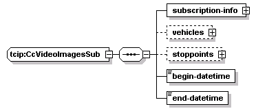 | source | <xs:complexType name="CcVideoImagesSub"> <xs:sequence> <xs:element name="subscription-info" type="CPTSubscriptionHeader"/> <xs:element name="vehicles" minOccurs="0"> <xs:complexType> <xs:sequence maxOccurs="25000"> <xs:element name="vehicle" type="CPTVehicleIden"/> </xs:sequence> </xs:complexType> </xs:element> <xs:element name="stoppoints" minOccurs="0"> <xs:complexType> <xs:sequence maxOccurs="25000"> <xs:element name="stoppoint" type="CPTStoppointIden"/> </xs:sequence> </xs:complexType> </xs:element> <xs:element name="begin-datetime" type="CPT-DateTime"/> <xs:element name="end-datetime" type="CPT-DateTime"/> </xs:sequence> </xs:complexType> |