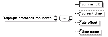 | source | <xs:complexType name="CptCommandTimeUpdate"> <xs:sequence> <xs:element name="commandID" type="CPT-CommandID"/> <xs:element name="current-time" type="CPT-DateTime" minOccurs="0"/> <xs:element name="utc-offset" type="CPT-Duration" minOccurs="0"/> <xs:element name="time-name" type="CPT-TimeName" minOccurs="0"/> </xs:sequence> </xs:complexType> |