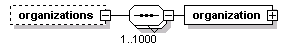 | source | <xs:element name="organizations" minOccurs="0"> <xs:complexType> <xs:sequence maxOccurs="1000"> <xs:element name="organization" type="CPTOrganizationalUnitIden"/> </xs:sequence> </xs:complexType> </xs:element> |