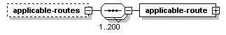 | source | <xs:element name="applicable-routes" minOccurs="0"> <xs:complexType> <xs:sequence maxOccurs="200"> <xs:element name="applicable-route" type="SCHRouteIden"/> </xs:sequence> </xs:complexType> </xs:element> |