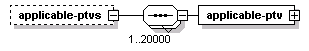 | source | <xs:element name="applicable-ptvs" minOccurs="0"> <xs:complexType> <xs:sequence maxOccurs="20000"> <xs:element name="applicable-ptv" type="CPTVehicleIden"/> </xs:sequence> </xs:complexType> </xs:element> |
