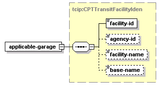 | source | <xs:element name="applicable-garages" minOccurs="0"> <xs:complexType> <xs:sequence maxOccurs="100"> <xs:element name="applicable-garage" type="CPTTransitFacilityIden"/> </xs:sequence> </xs:complexType> </xs:element> |